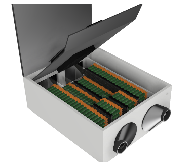 The Power subteam is building an air-cooled battery pack with safety at its core. A hood is used to maximize airflow over the cells and isolate high voltage connections from the hands that will do maintenance. It has 416x 18650 lithium-ion cells, 13 parallel modules of 32 cells in series, max capacity of 4.94 kilowatt-hours, and is monitored by a battery protection system.